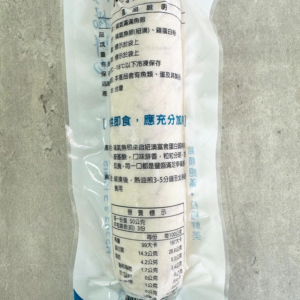選用來自紐西蘭的藍尖尾無鬚鱈(Hoki),因台語發音與「福氣」相近,在台灣又有「福氣魚」的美稱。嚴選來自紐西蘭的福氣蒸魚卵,帶著淡淡鵝黃色粒粒分明的魚卵,綿密細緻的魚卵透著淡淡鹹味,簡單的油煎香氣四溢,酥脆的外皮與綿密的魚卵,可以直接吃也可以淋上少許沙拉醬,散發迷人香氣,讓您每一口都可以吃濃郁鮮甜的大海原味。