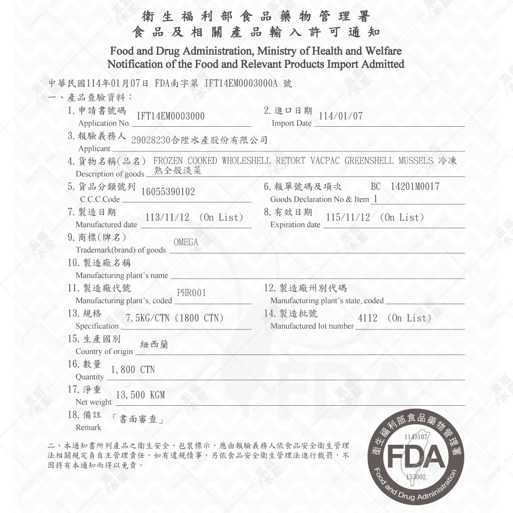 淡菜(Mussel)其實是一種貽貝,長得有點像台灣的孔雀蛤,但是尺寸卻又大上許多,因為生長環境與條件不同,孔雀蛤體積較小、肉色為深橘紅色,真正原裝進口正宗的紐西蘭淡菜體積較大,蛤肉顏色偏白或淺黃色,有別於本土的孔雀蛤,紐西蘭淡菜來自得天獨厚的純淨環境,孕育出的淡菜自然特別甘甜味美。