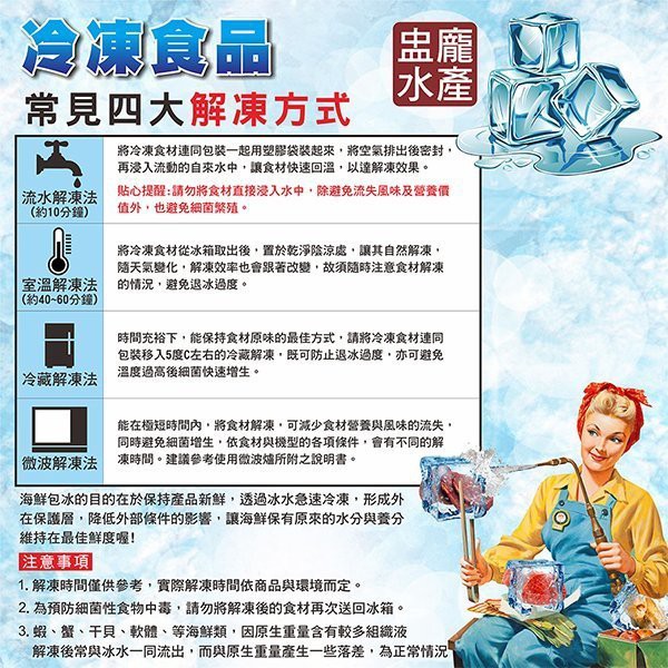 - *帶殼類海鮮注意*請流水沖退冰。隔水沖退。完全退冰軟掉後,即可料理。熟了就可以吃,勿需一直煮,不要久煮。吃了超美味。