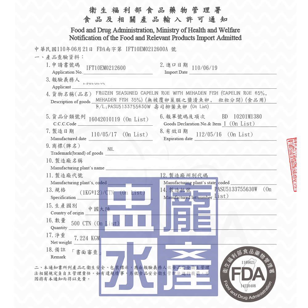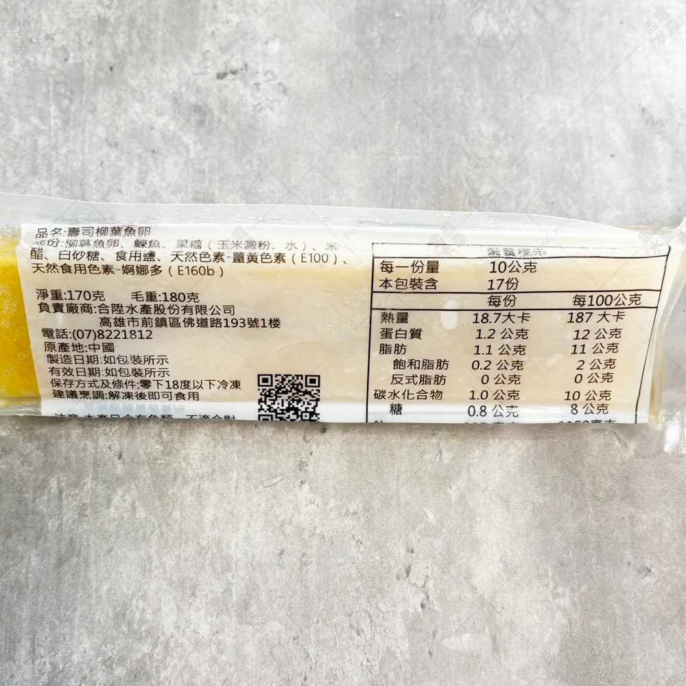 商品名稱:單條壽司柳葉魚卵(單條泥信生魚片)