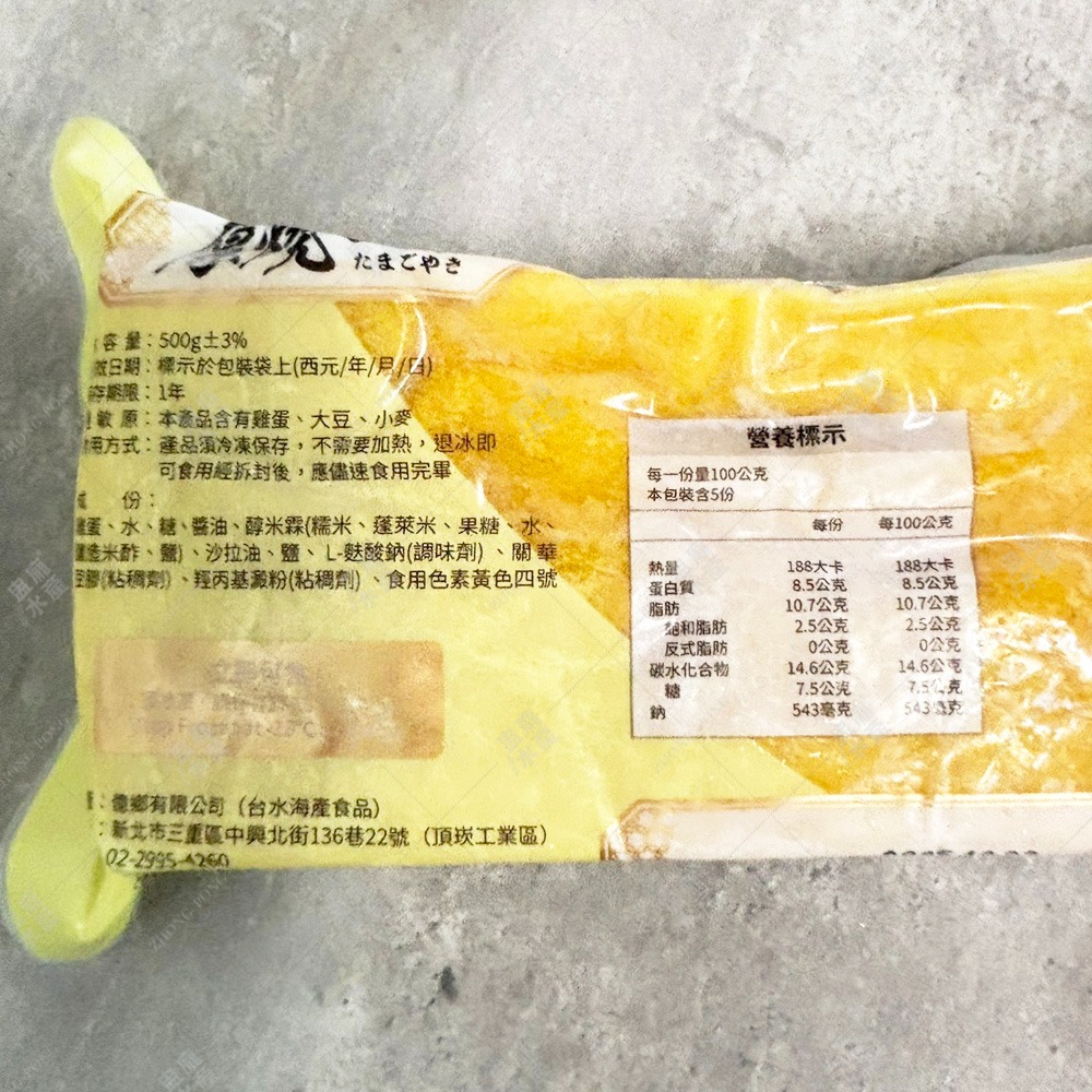 玉子燒又稱「蛋磚」,是一道深具特色的日式料理。特製的玉子燒,口感細緻綿密,濃醇蛋香與甜鹹滋味搭配得恰到好處。不需要高超的手藝,簡單、方便,解凍後立即享用。