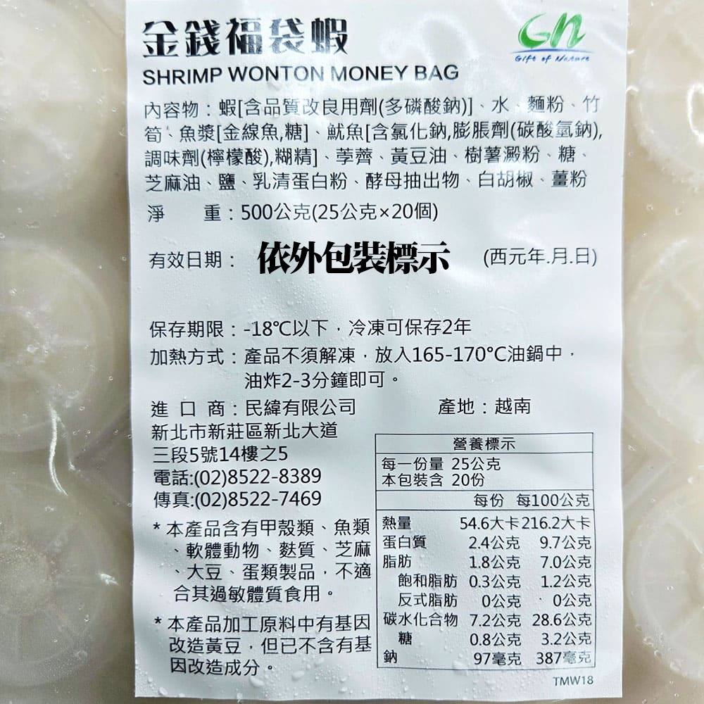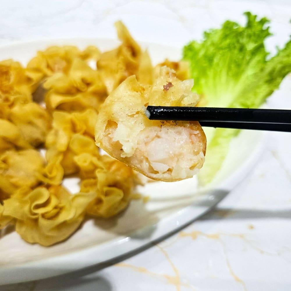 每一顆金錢福袋蝦,外脆內嫩,Q彈鮮甜,充滿蝦仁、魚漿與魷魚製成的美味餡料,一口咬下,香脆爽口,讓大人小孩都愛不釋手!每盒20顆,無需解凍,放入170度油鍋炸2~3分鐘,輕鬆上桌。