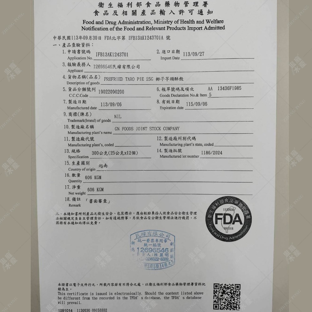 保存年限:冷凍-18°C以下1年