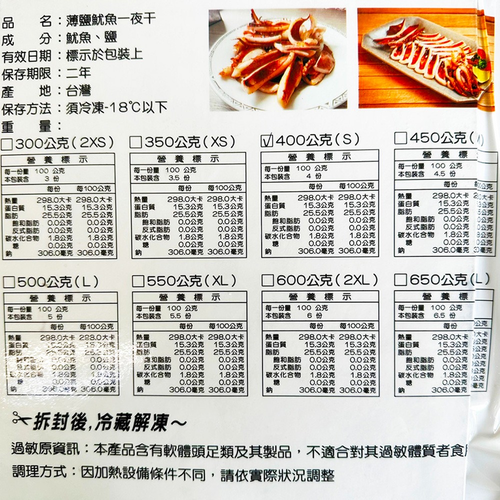 商品名稱:薄鹽魷魚一夜干(S)單隻入(海鮮主義)
