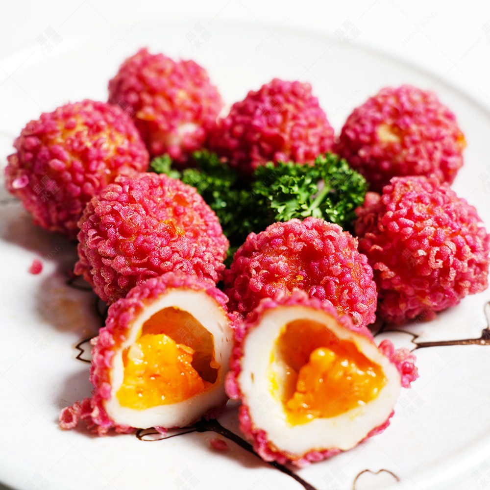「爆汁荔枝模球」是一款創意十足的冷凍魚漿製品,以金線魚漿為基底,搭配玉米片、魷魚與特調沙拉醬,打造外酥內嫩的多層次口感。無需解凍即可油炸或氣炸,無論是家庭聚餐或宵夜時光,都能輕鬆享受這款兼具趣味與美味的海鮮小點!