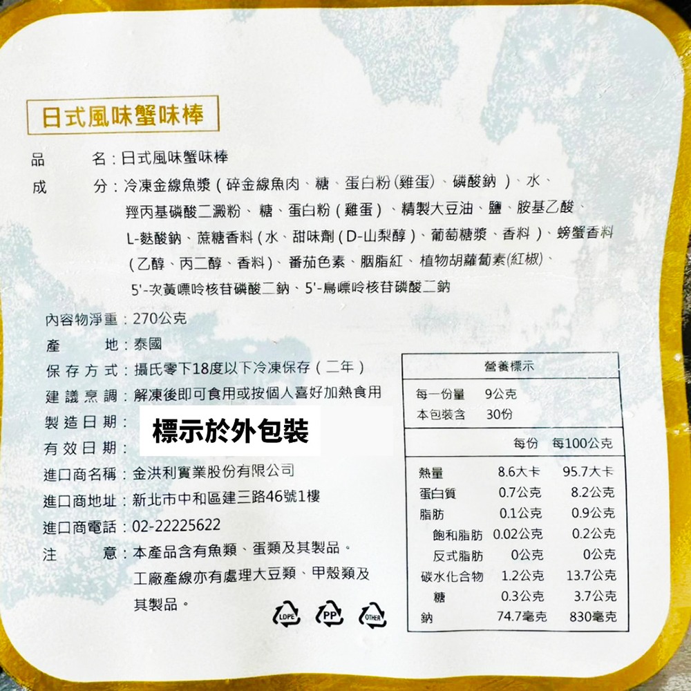 商品名稱:日式風味蟹味棒