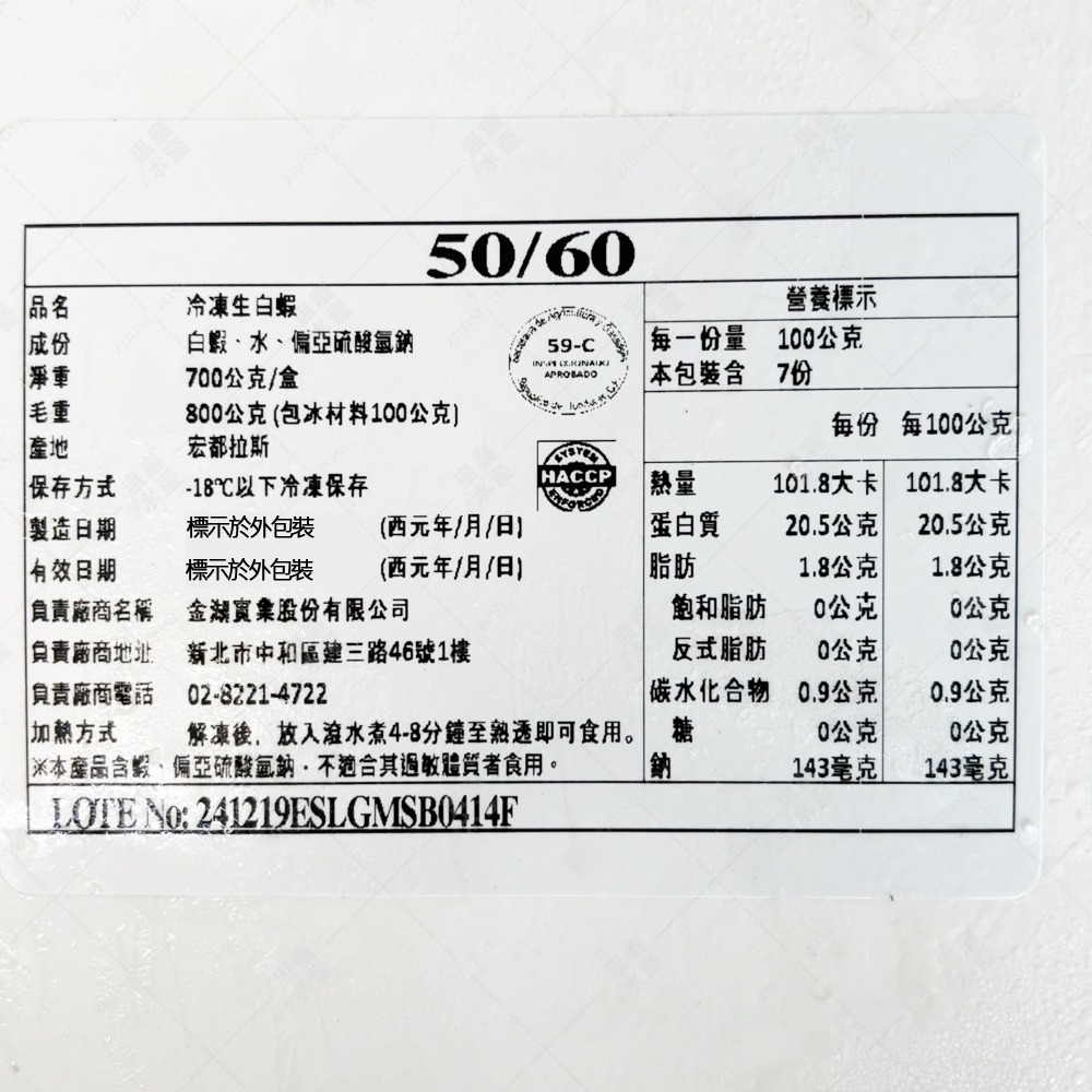 商品名稱:50/60生白蝦(御蝦王)