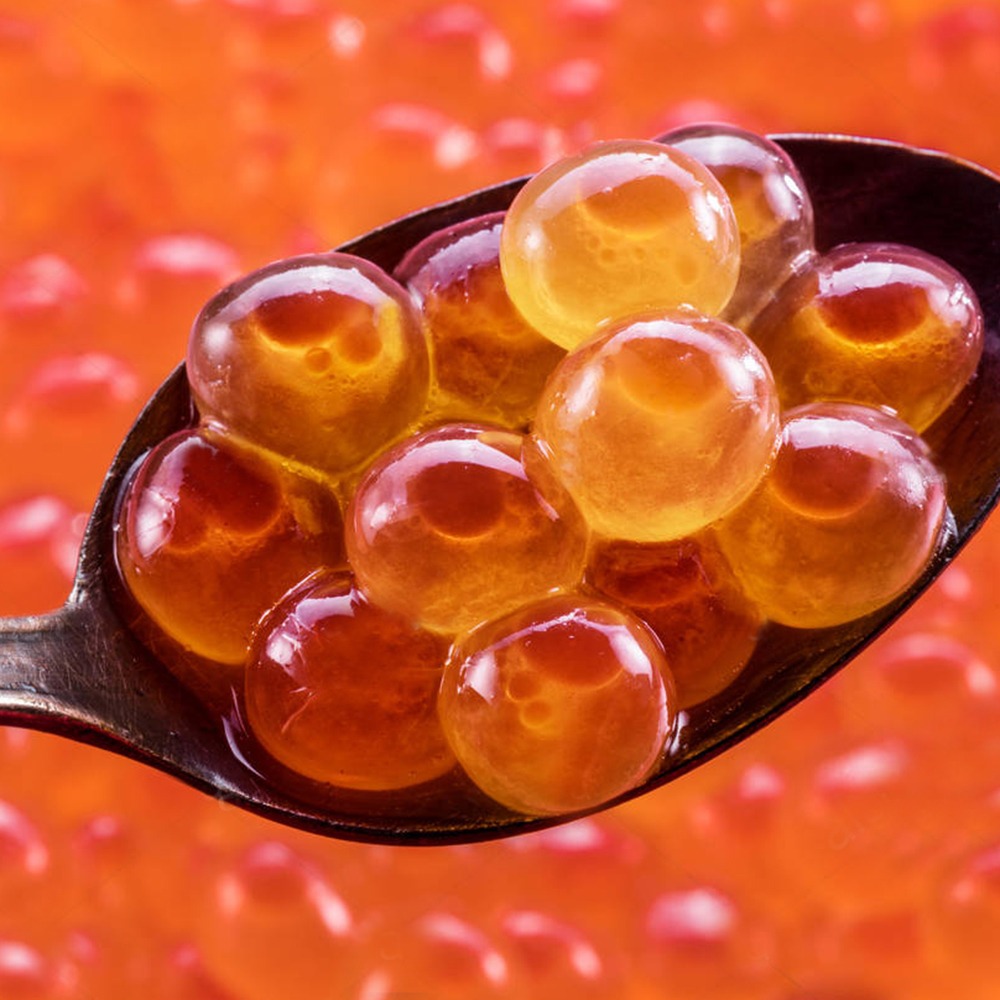 嚴選來自日本進口的鮭魚卵,顆顆飽滿晶瑩剔透,醬漬柔順美味,非常適合用在日式料理妝點、提味用,輕含嘴裡,用舌尖碰觸,肥嫩金亮的鮭魚卵 「噗滋」一聲在口中爆破開來,深藏在海裡的美妙滋味席捲而來,飛舞舌尖的Q彈爆破口感,令人留戀不已,且產量珍貴,被譽為海中仙物。