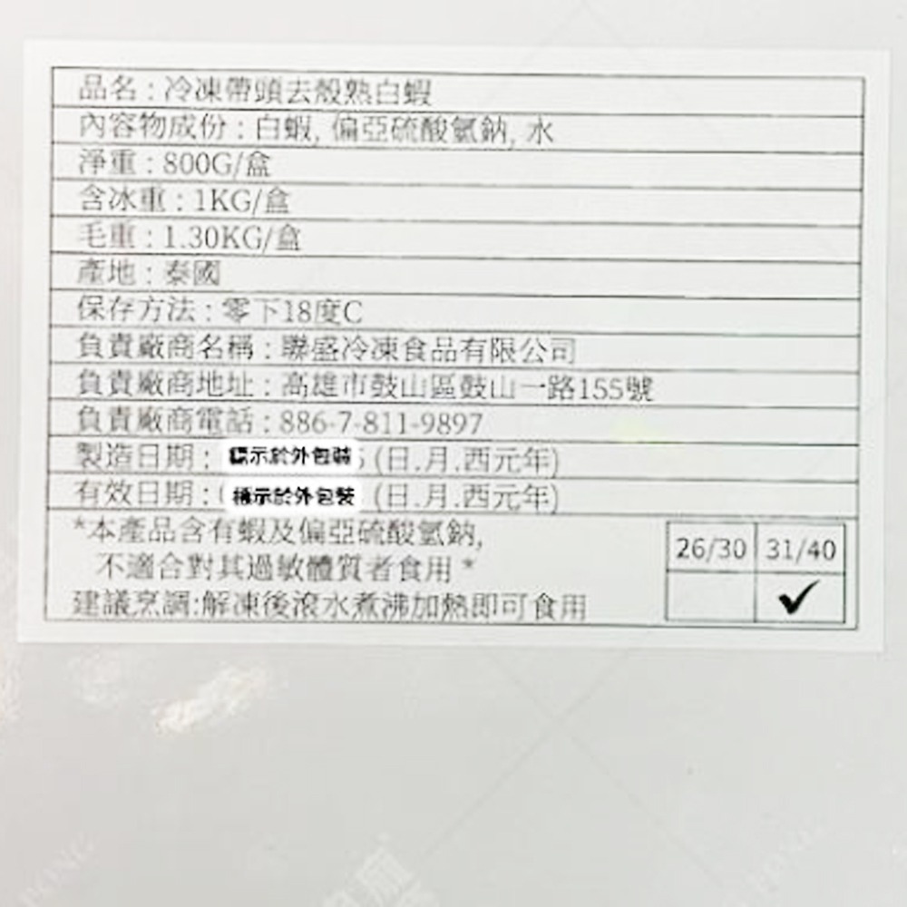 本產品嚴選來自泰國的優質白蝦,蝦體飽滿、肉質緊實,入口鮮甜彈牙,帶來絕佳的口感享受。經急速冷凍處理,完整鎖住蝦子的鮮美與營養,烹調方式非常簡便,無需繁複處理,只需解凍後用滾水煮沸加熱,短短幾分鐘即可還原Q彈緊實的肉質與鮮美口感,無論是直接品嚐、搭配麵食或作為沙拉配料都非常美味。