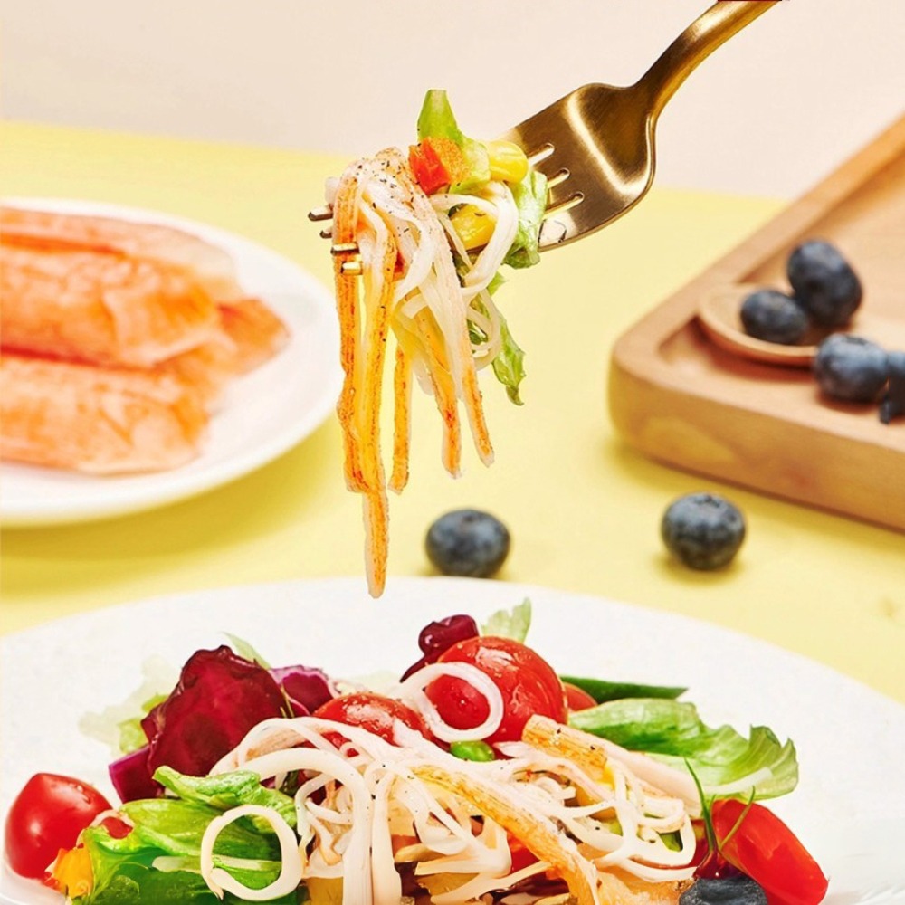 以精選魚漿為主角的食品,巧妙地重現了海洋的鮮甜滋味與一絲絲的仿真口感。無論是作為火鍋料吸飽湯汁、撕成細絲拌入沙拉增添口感,或是與蛋液結合煎成鮮美的烘蛋,它總能完美融入各種料理,畫龍點睛。