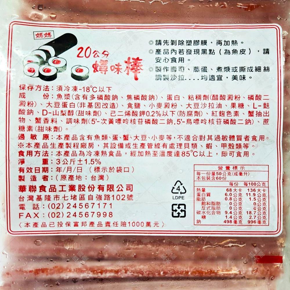 注意事項:解凍後請盡速食用完畢,並且請勿反覆解凍結凍,影響新鮮度。