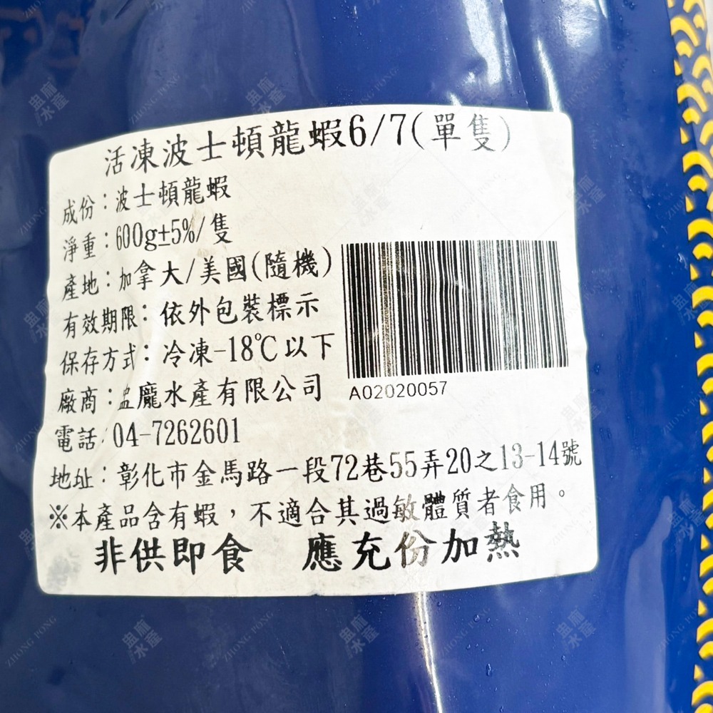 商品名稱:活凍波士頓龍蝦6/7(單隻)