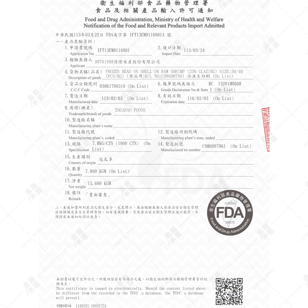 商品名稱:60/70生白蝦(贏家寶)(ENGABAO FOODS)