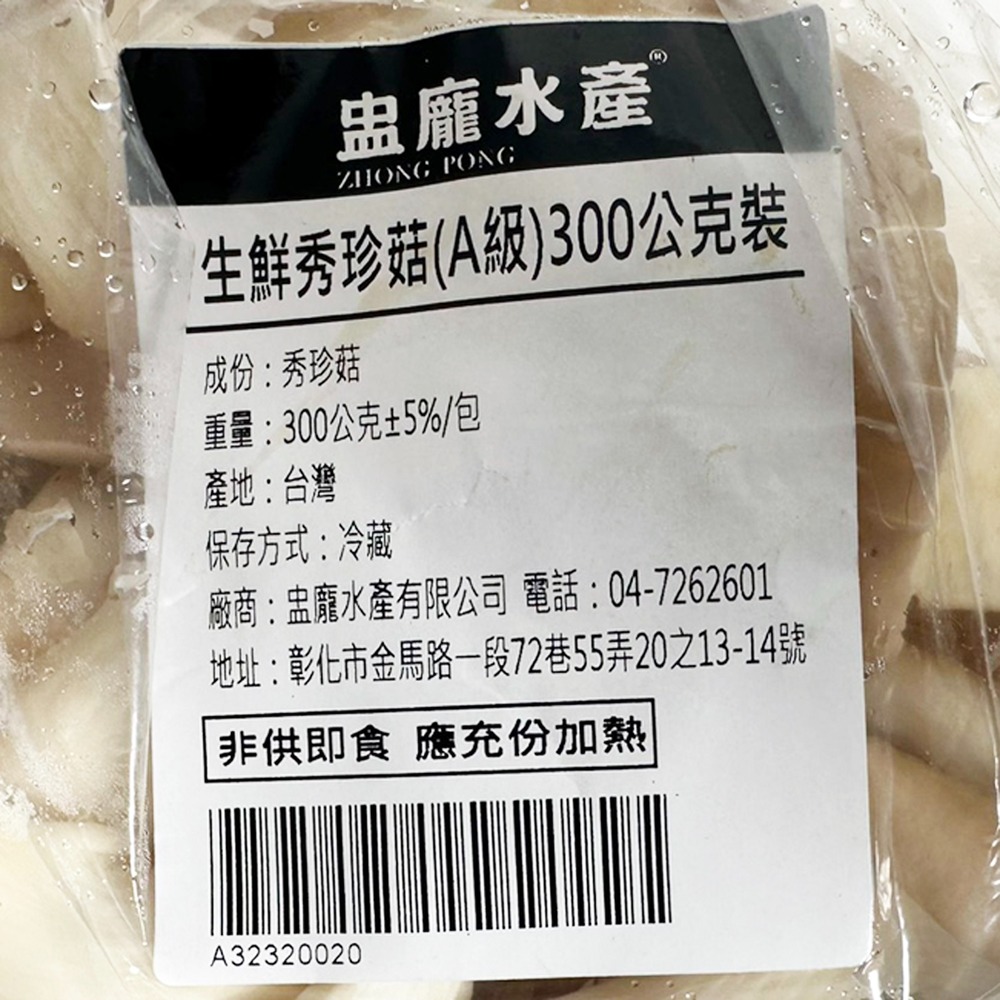 商品名稱:生鮮秀珍菇(A級)300g裝