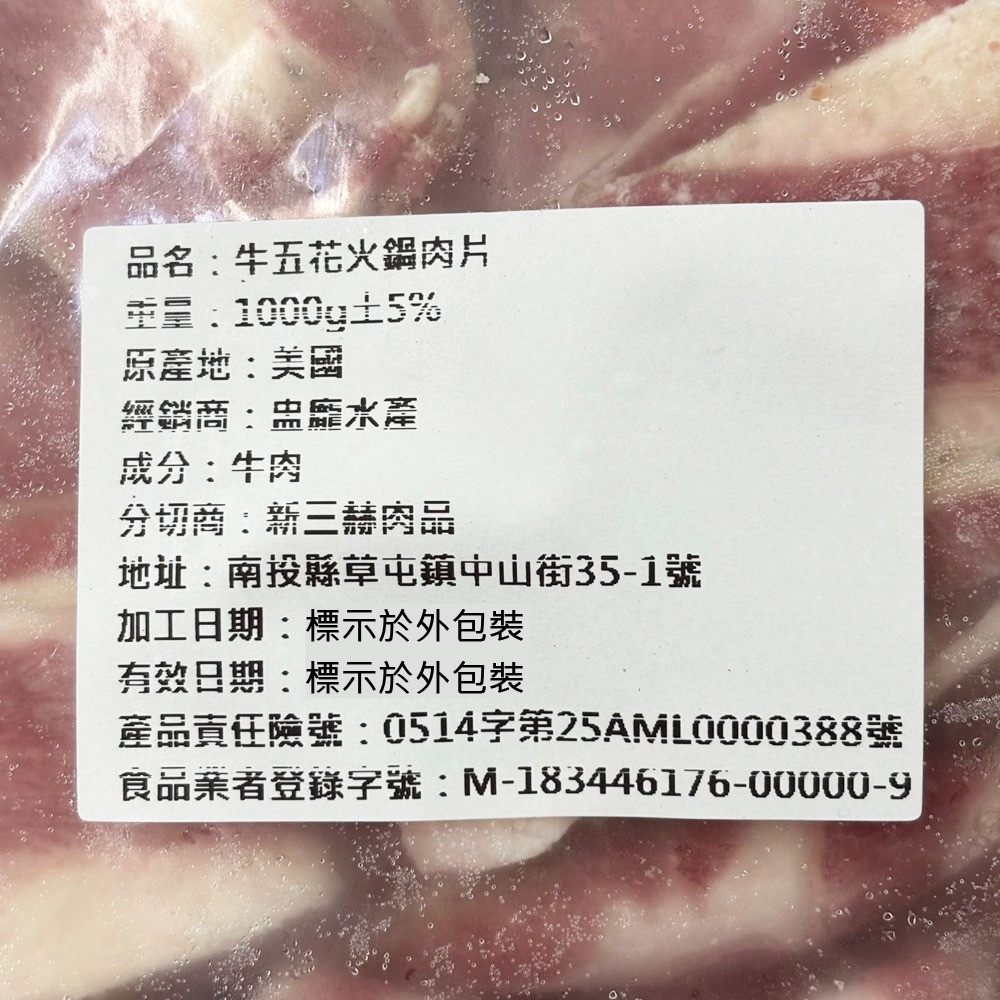 商品名稱:牛五花火鍋肉片(1公斤裝)