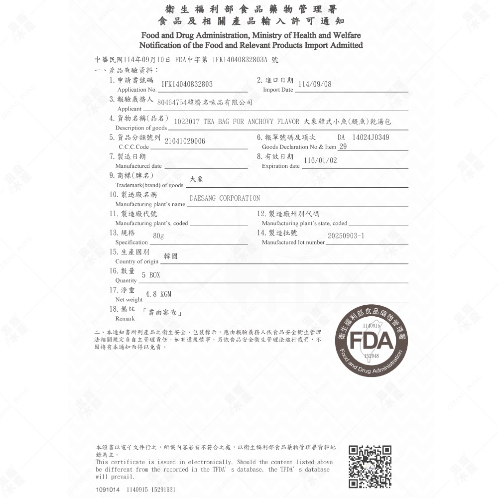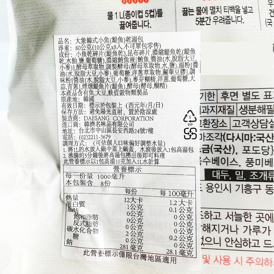 商品名稱:大象韓式小魚(鯷魚)乾湯包