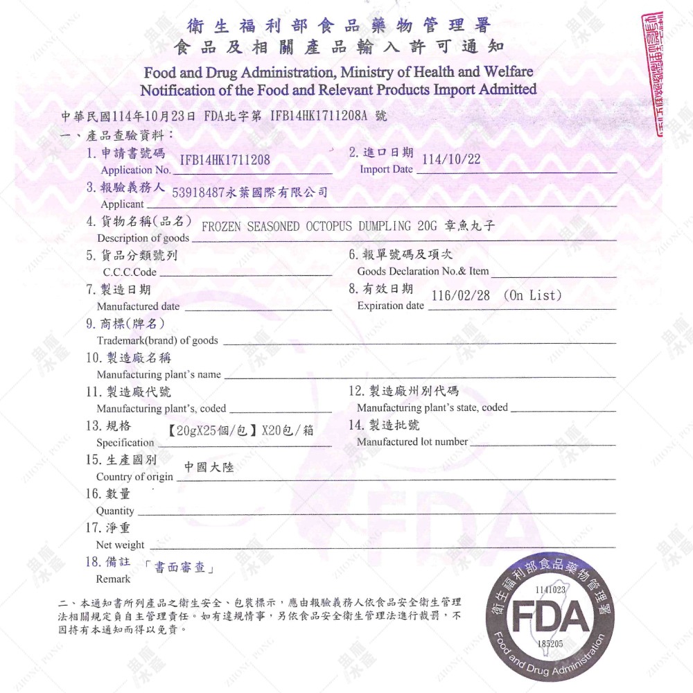 保存年限:冷凍-18°C以下保存2年