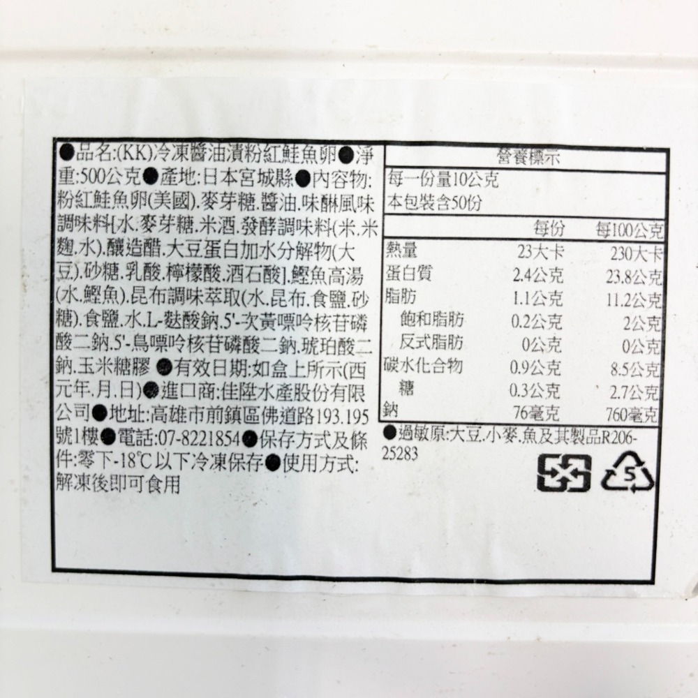 商品名稱:(KK)冷凍醬油漬粉紅鮭魚卵