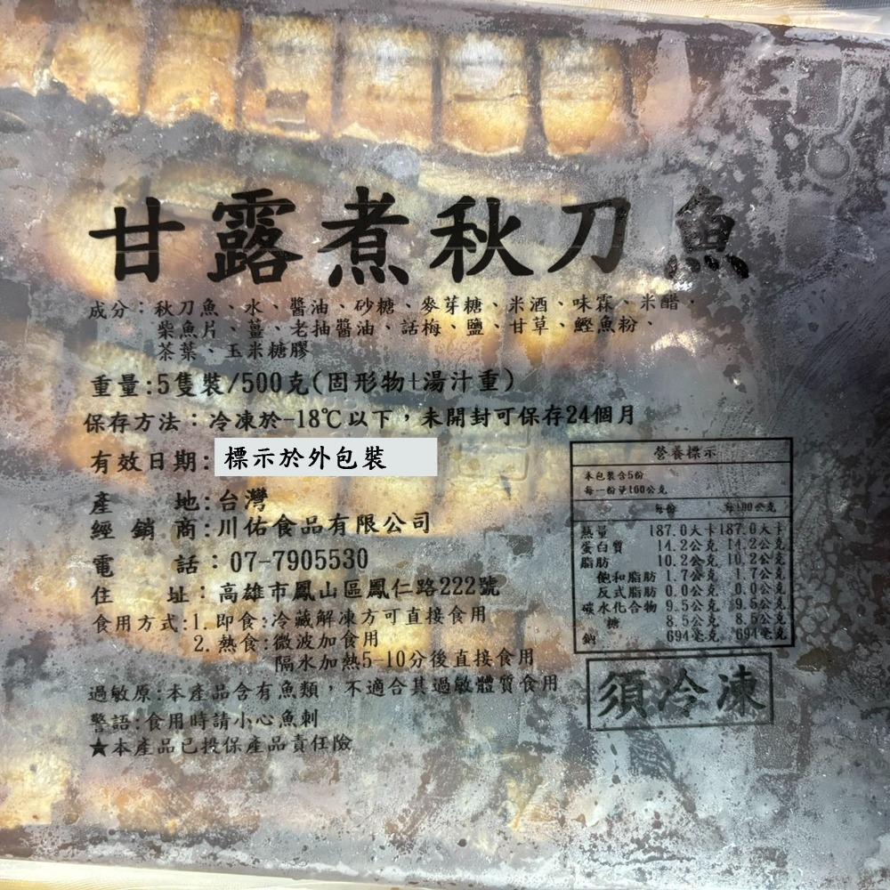 商品規格:重量500g±5%/盒(5尾/盒)(固形物+湯汁重)