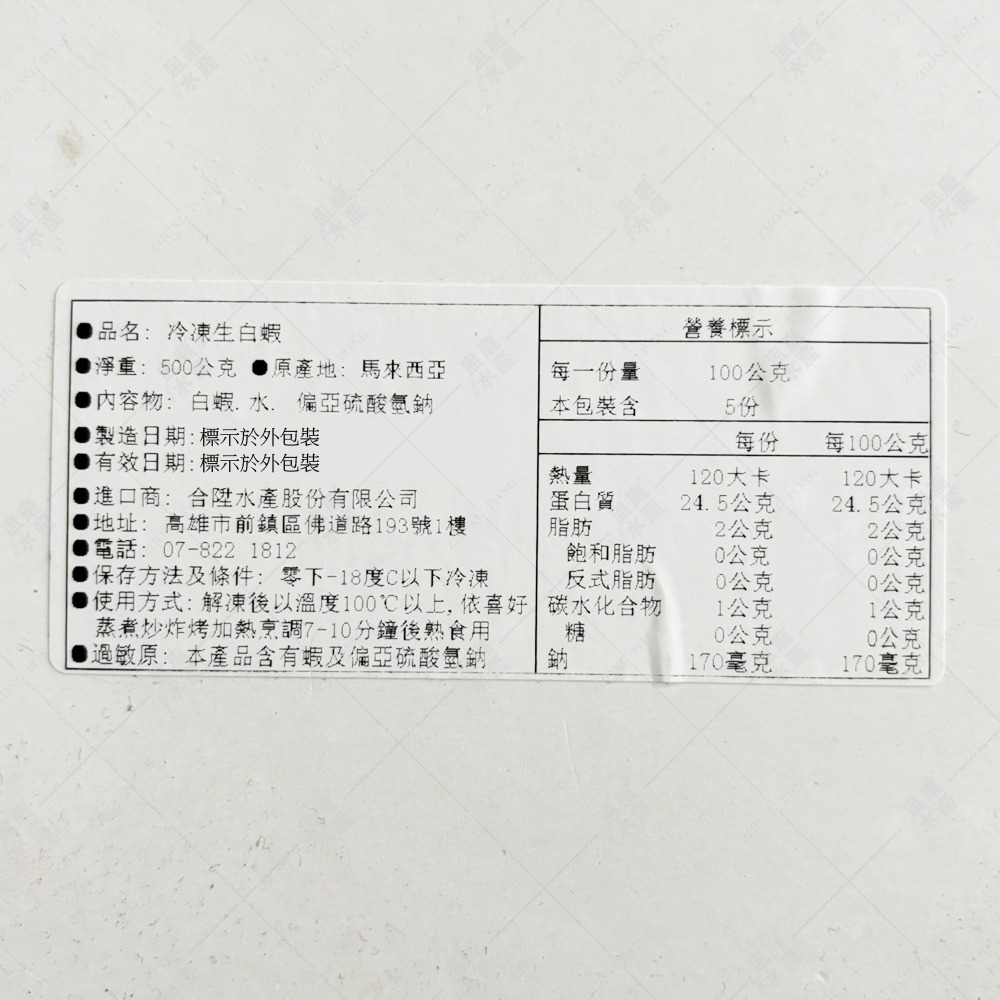 商品名稱:16/20冷凍生白蝦(大嘴鳥)