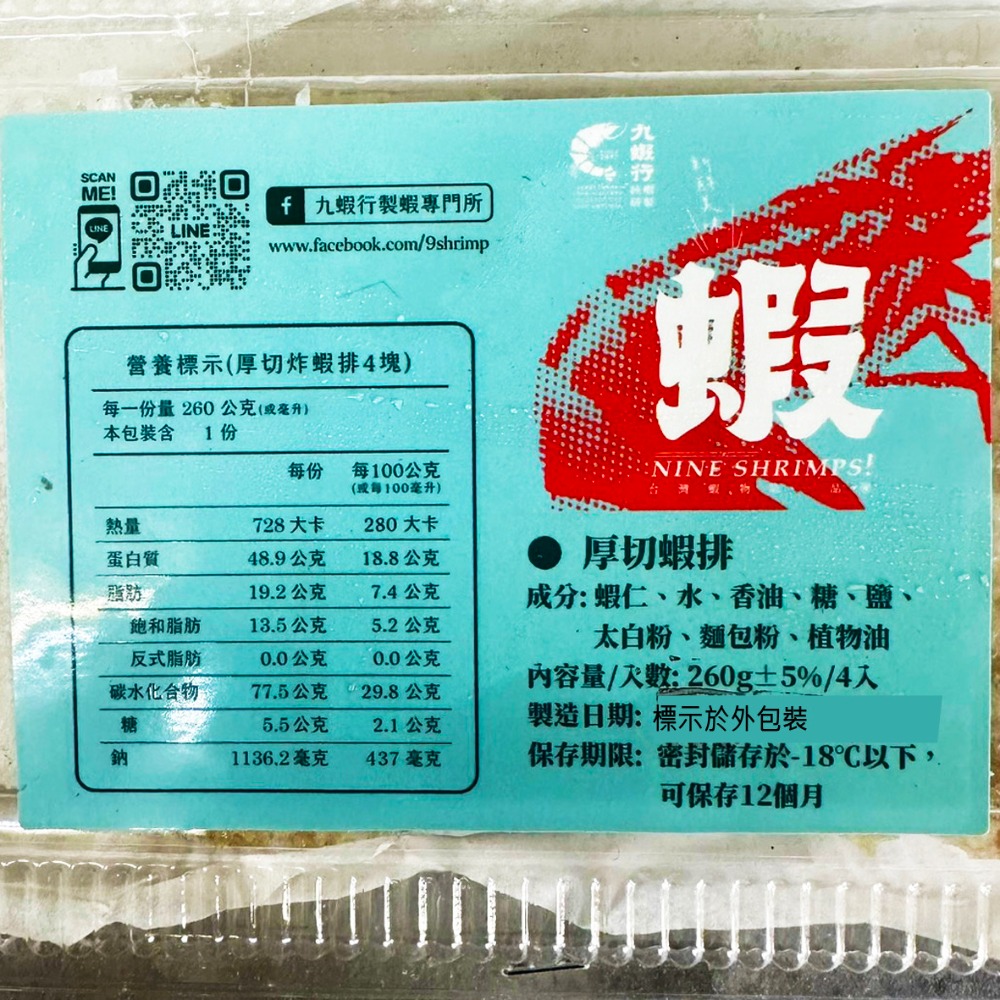商品名稱:厚切炸蝦排(4塊)(九蝦行)