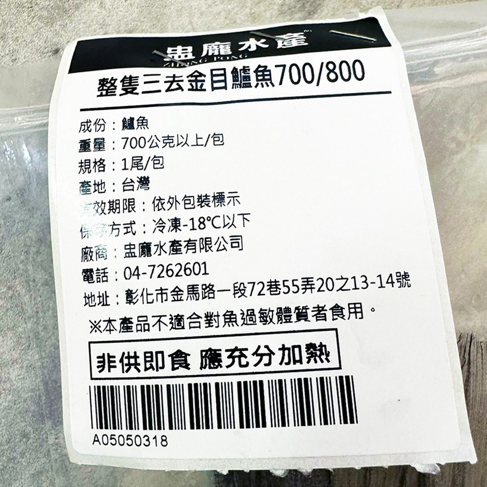 整隻金目鱸魚嚴選新鮮直送,魚體完整、肉質細緻潔白,口感鮮甜。無論清蒸、紅燒、煮湯或香煎,都能完整呈現魚肉的自然鮮味。料理後肉質滑嫩不易散,魚皮Q彈、油脂適中,是家庭餐桌與宴客料理的理想選擇。