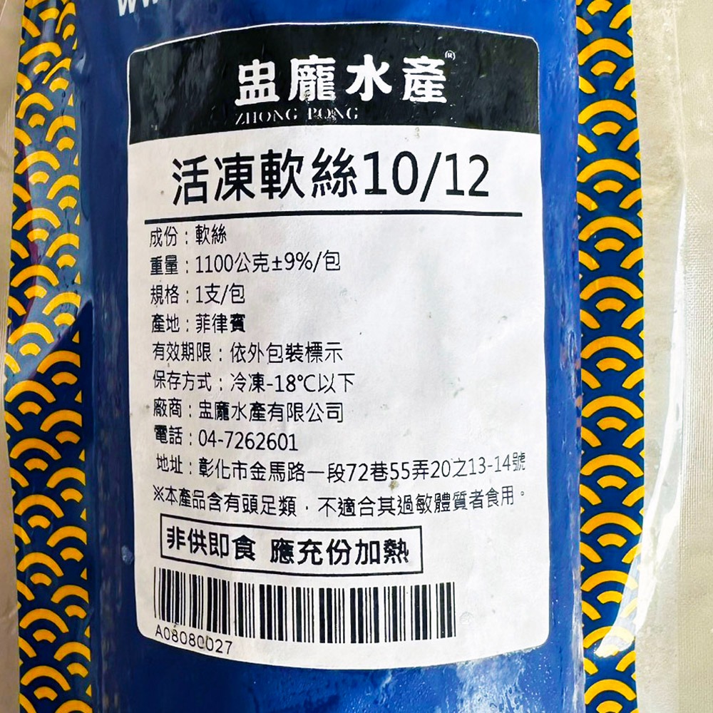 商品名稱:活凍軟絲10/12