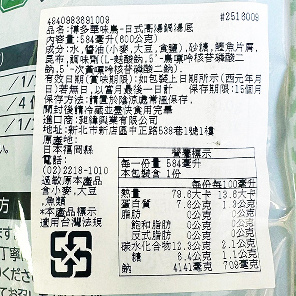 商品名稱:博多華味鳥日式高湯鍋湯底