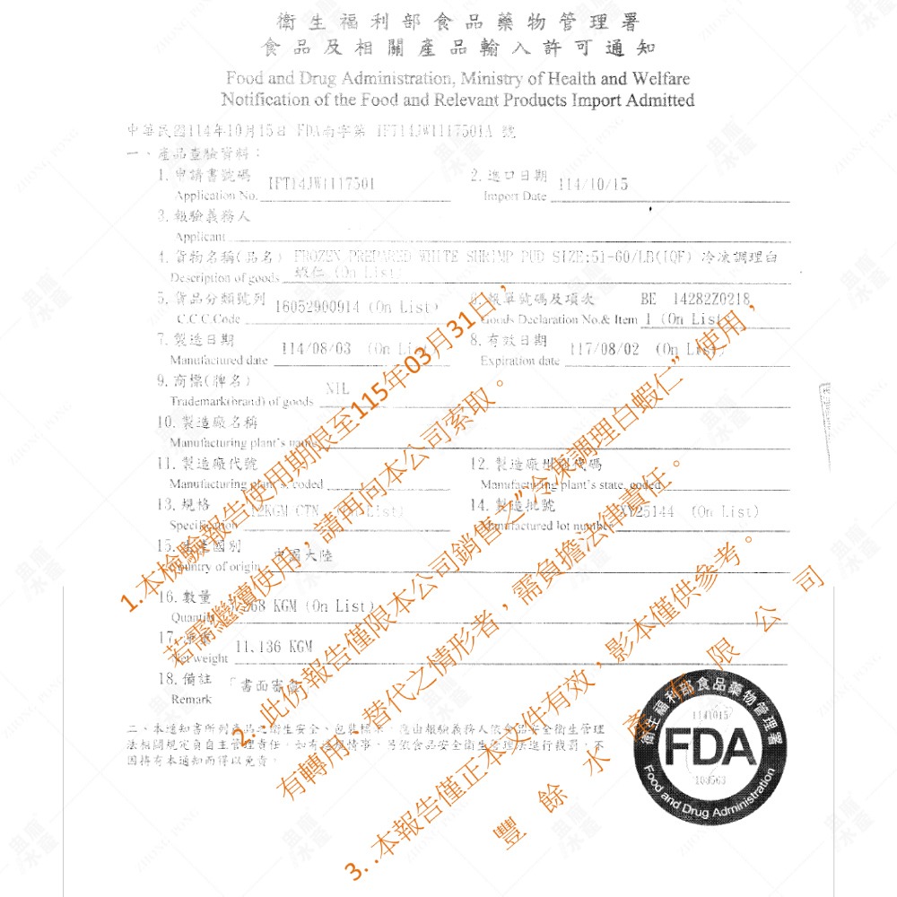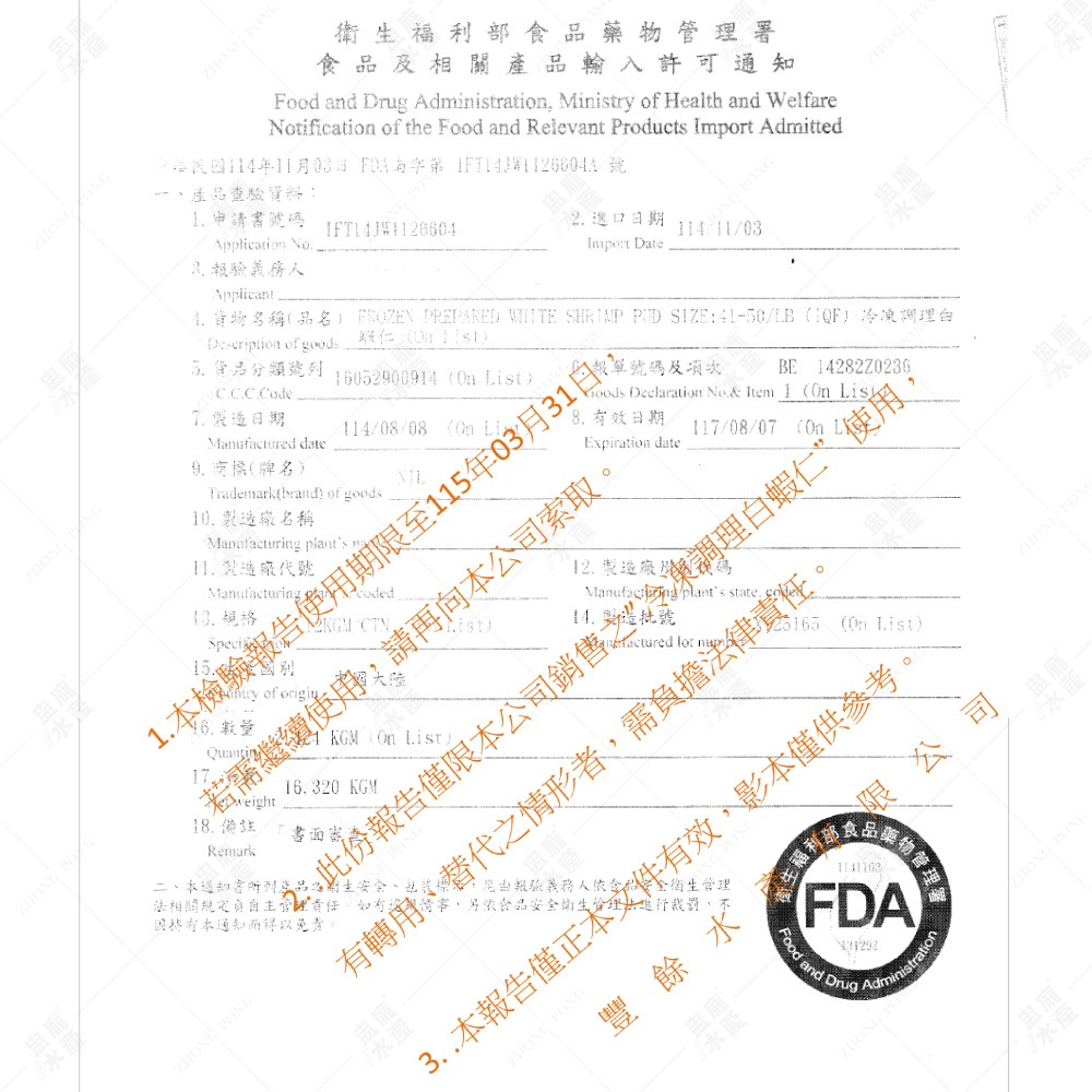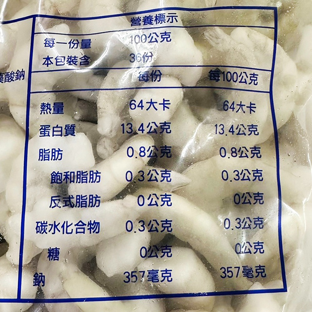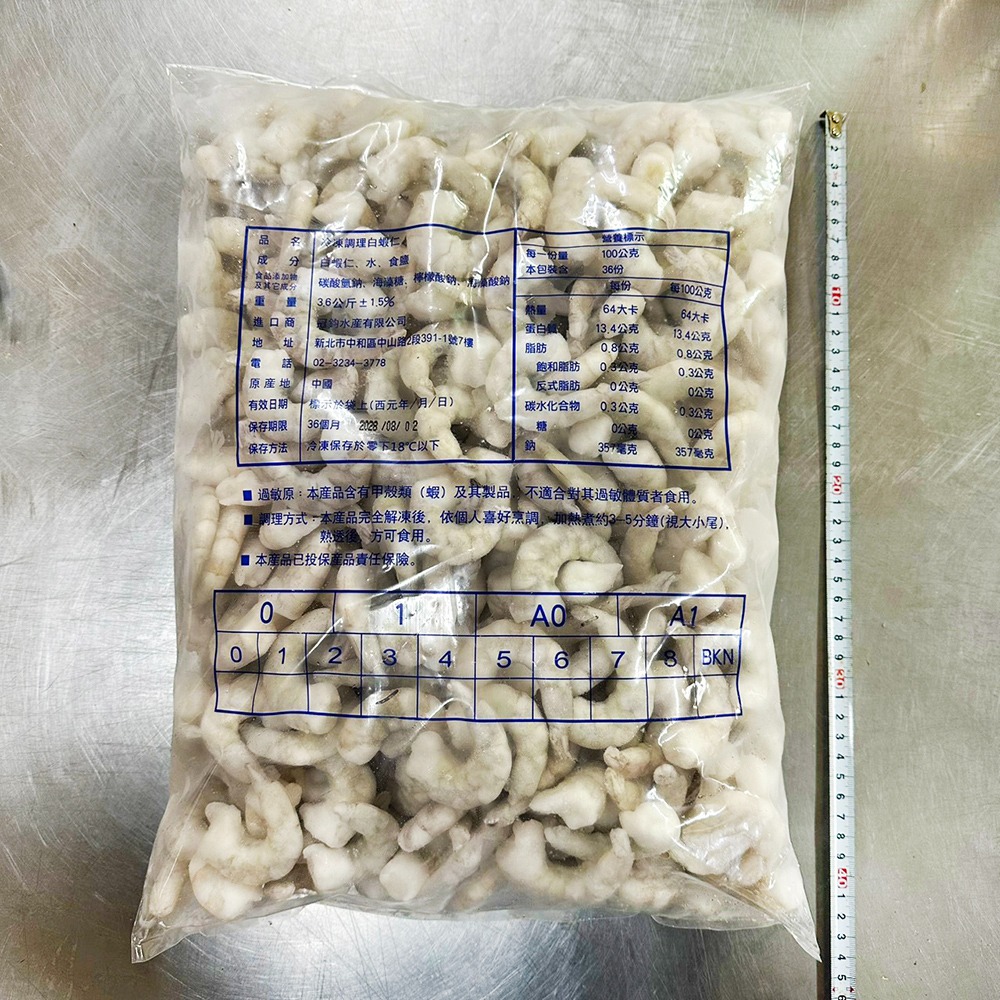 商品名稱:21/25冷凍調理白蝦仁(無割背,成品)(3號)(3.6公斤裝)