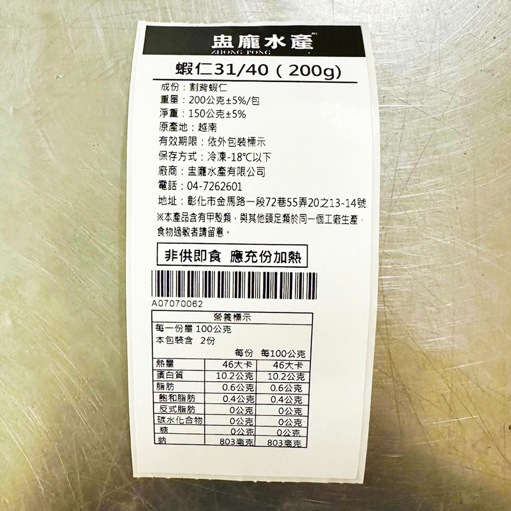 商品名稱:蝦仁31/40(220g)