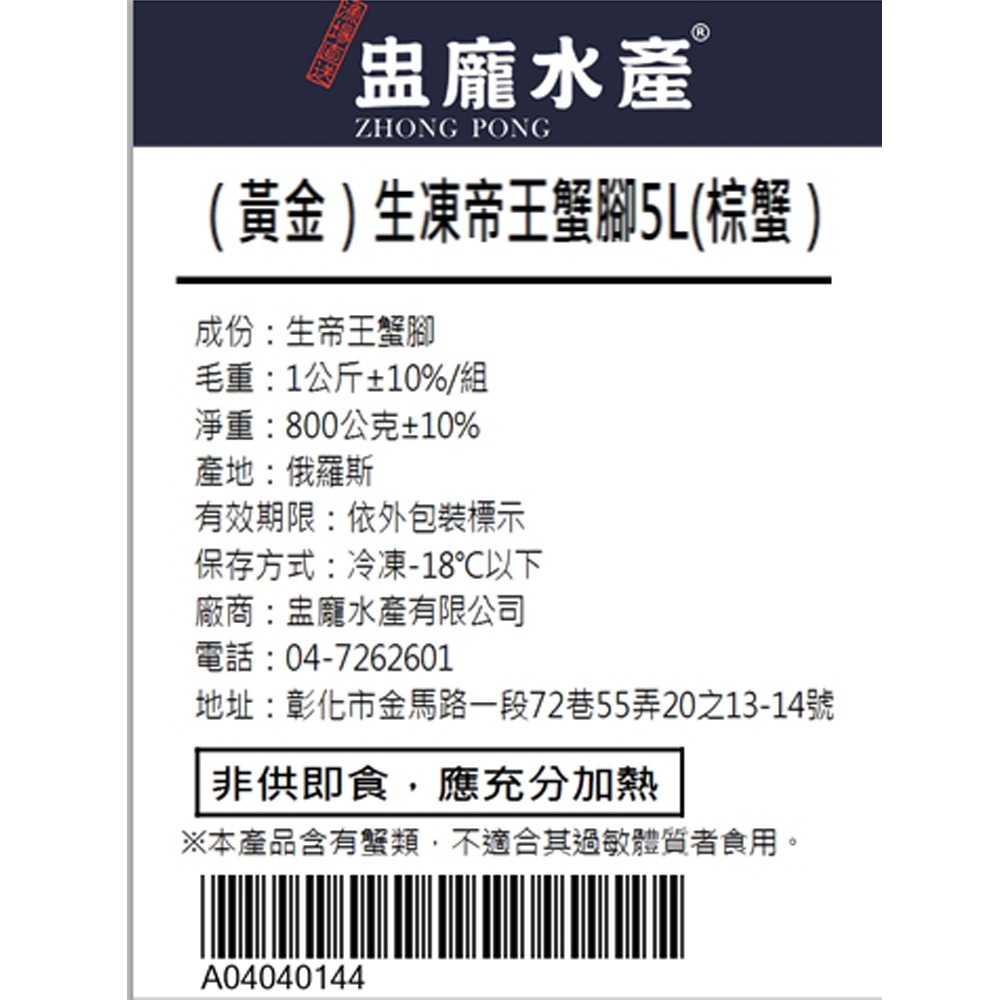 商品名稱:(黃金)生凍帝王蟹腳5L(棕蟹)