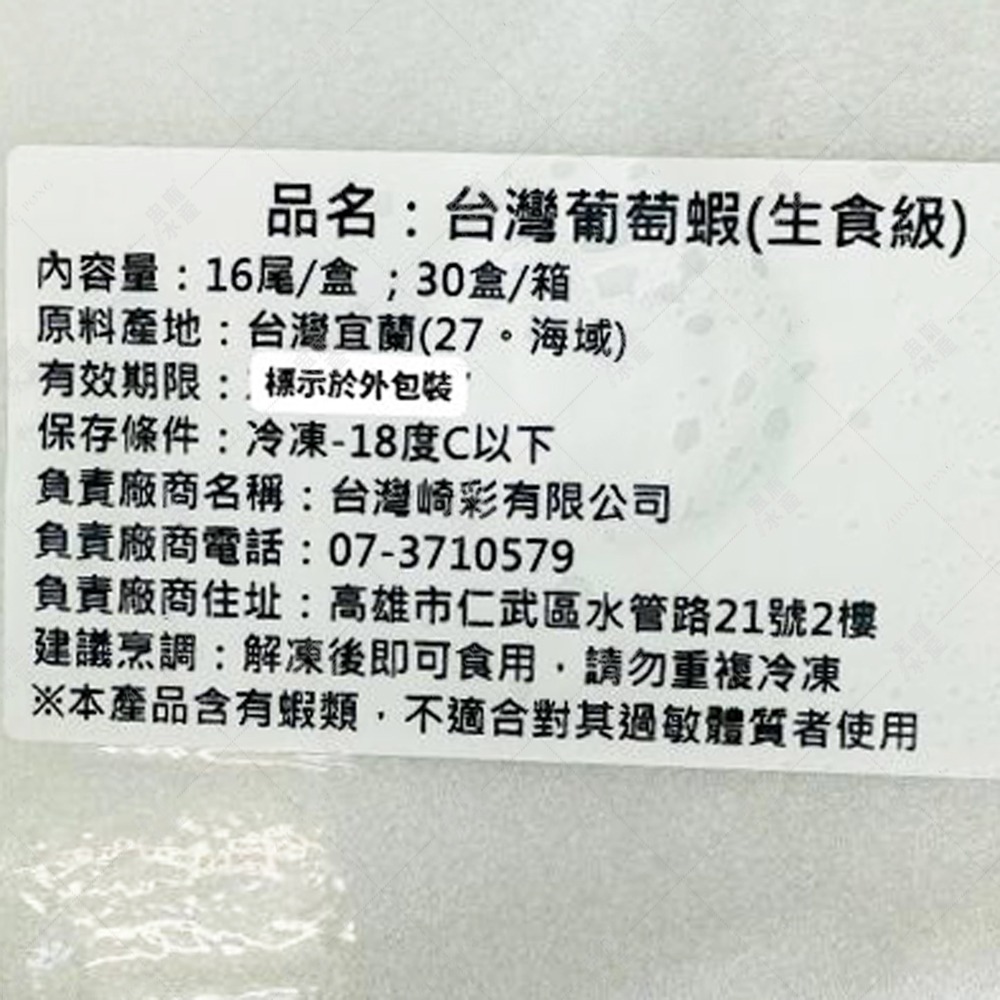 商品名稱:台灣葡萄蝦(去頭帶尾)(生食級)