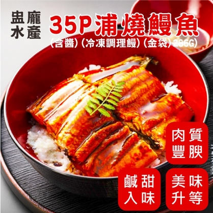 商品名稱:35P浦燒鰻魚(含醬)(冷凍調理鰻)(金袋)