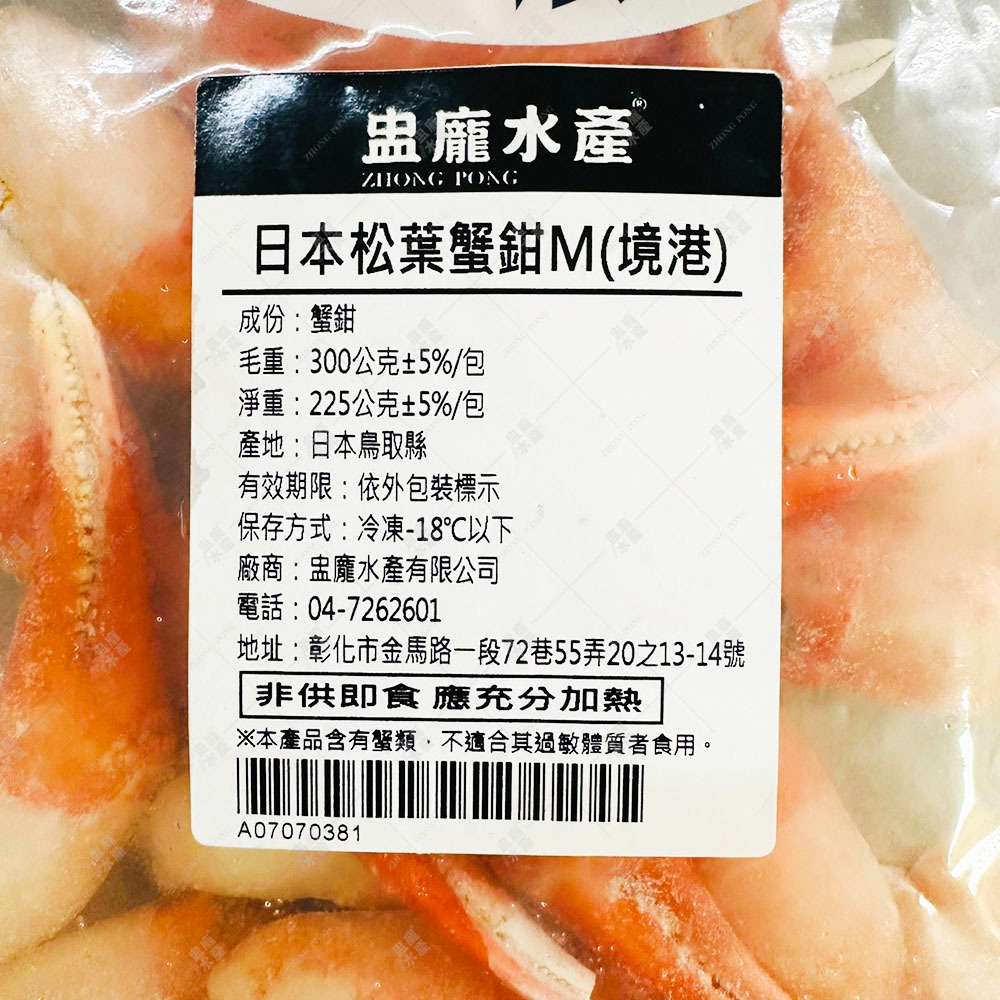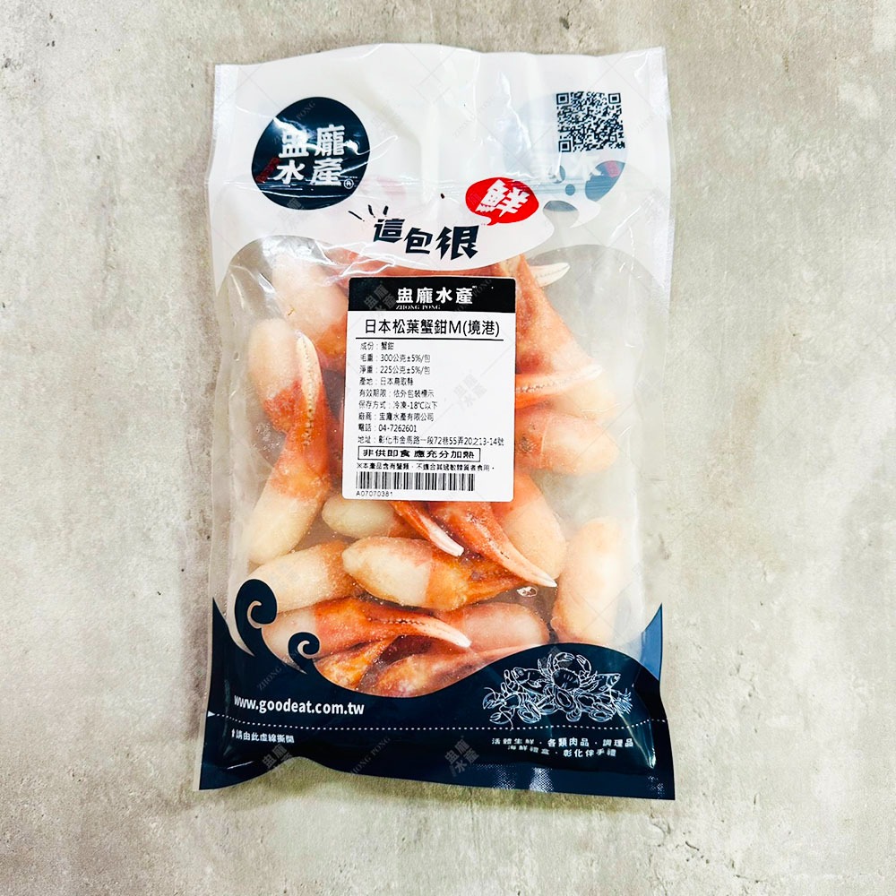 松葉蟹的捕撈地點在日本海海域,又稱為楚蟹,是日本三大名蟹之一,生活於寒冷的海域,相當高級的食材,前爪是蟹類捕捉食物最有力的部位,肉質緊實有彈性,蟹鉗本身已熟凍,但食用前建議煮熱享用,入口鮮嫩細緻,保有鮮甜的原味,這美味絕對讓人回味無窮。