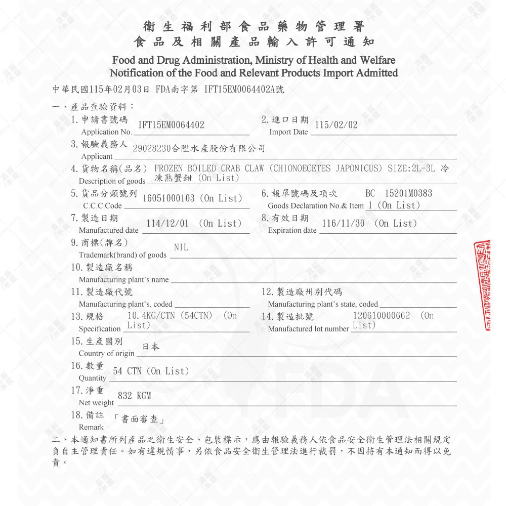 保存年限:冷凍-18°C以下2年