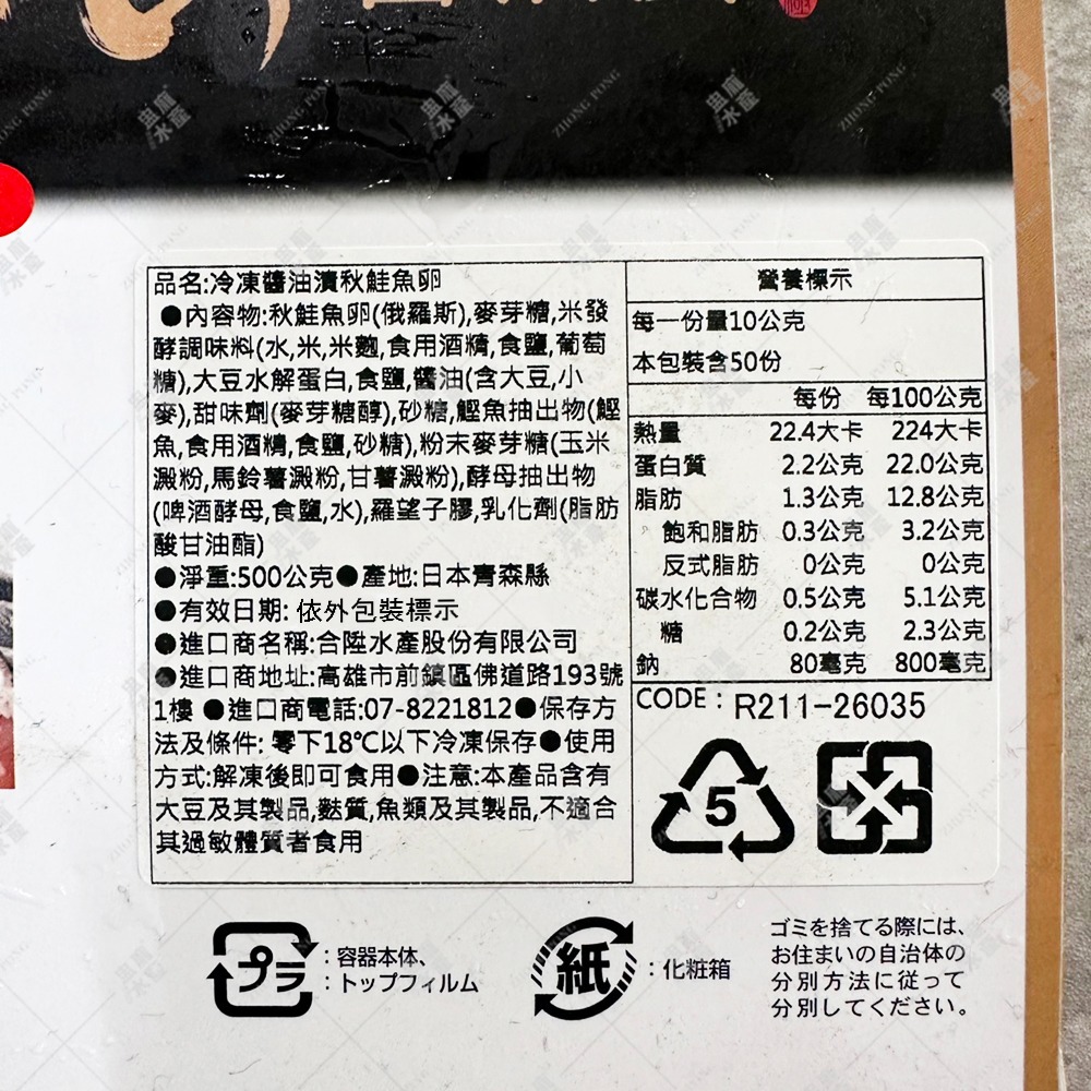 商品名稱:日本醬油漬秋鮭魚卵(大豐秋鮭)