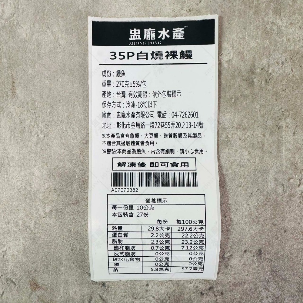 ※提醒您:「35P」為整箱規格,表示一箱共有35包,並非單包內含35片。本賣場所販售之鰻魚為單包裝,每包內容物為1片。