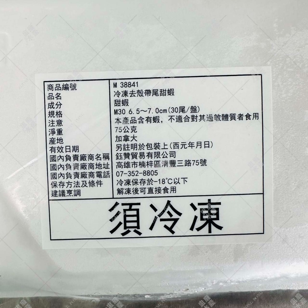 商品名稱:冷凍去殼帶尾甜蝦M(30尾/盤)(甘海老,車旺牌)
