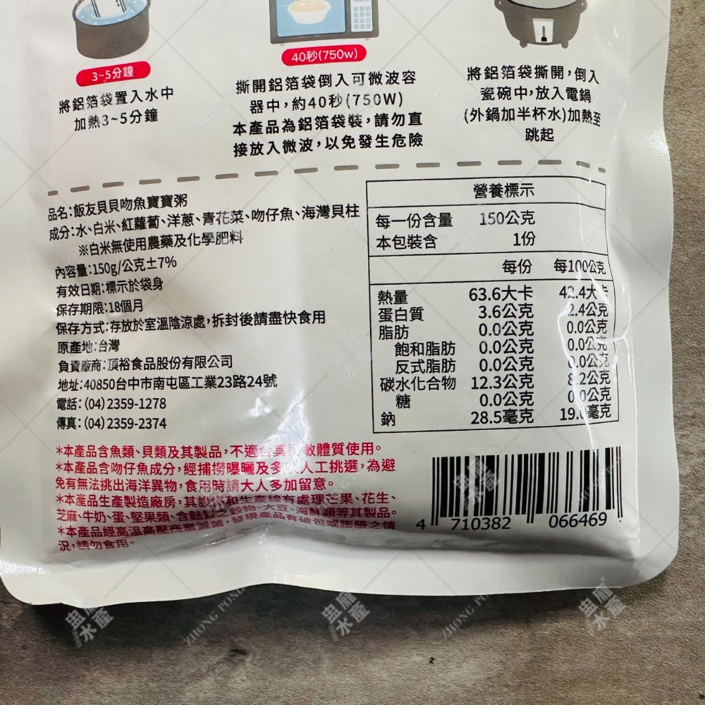 料理方式:隔水加熱、微波加熱、電鍋加熱